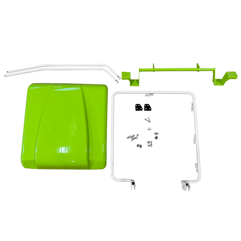 | Grasbehälter Beladungssystem | Ladebeschleuniger (Ø 350 mm) mit beweglichen Blättern, Riemenübertragung und unabhängiger elektromagnetischer Kupplung. Motorisiertes Grasleitblech, das eine vollständige und gleichmäßige Befüllung des Korbes gewährleistet. | |